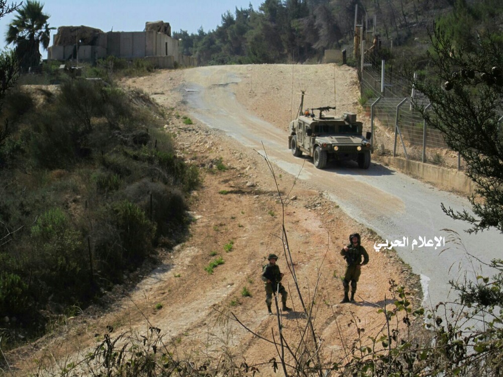 قوة للعدو الاسرائيلي مؤلفة من 12 جندياً تبدأ صيانة للسياج التقني في مستعمرة "مسكفعام" المحاذي للطريق عند مدخل بلدة العديسة الحدودية جنوب لبنان، وسط اجراءات احترازية اتخذها الجيش اللبناني في المنطقة.