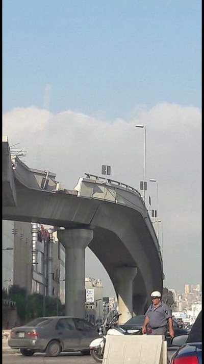 اذا كنت تقود سيارتك باتجاه أوتوستراد الدورة فعليك الإنتباه والحذر، فحياتك قد تكون معرّضة للخطر. فالجسر الذي يقع مقابل مجمّع "سيتي مول" مهدد بالانهيار على المواطنين، وهو فعلاً انهار جزء منه على مرأى من الدولة وقوى الأمن وشرطيي السير.