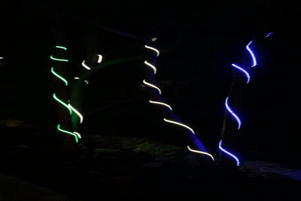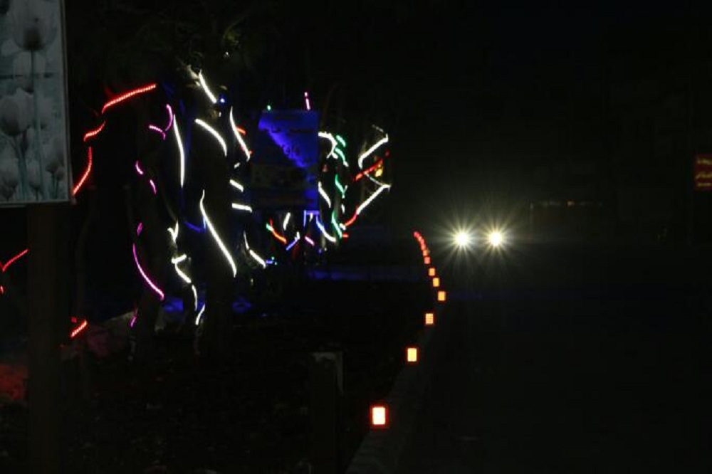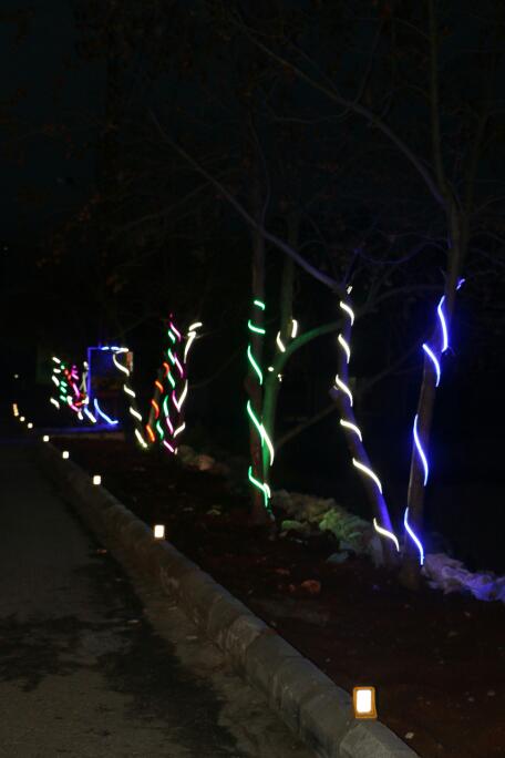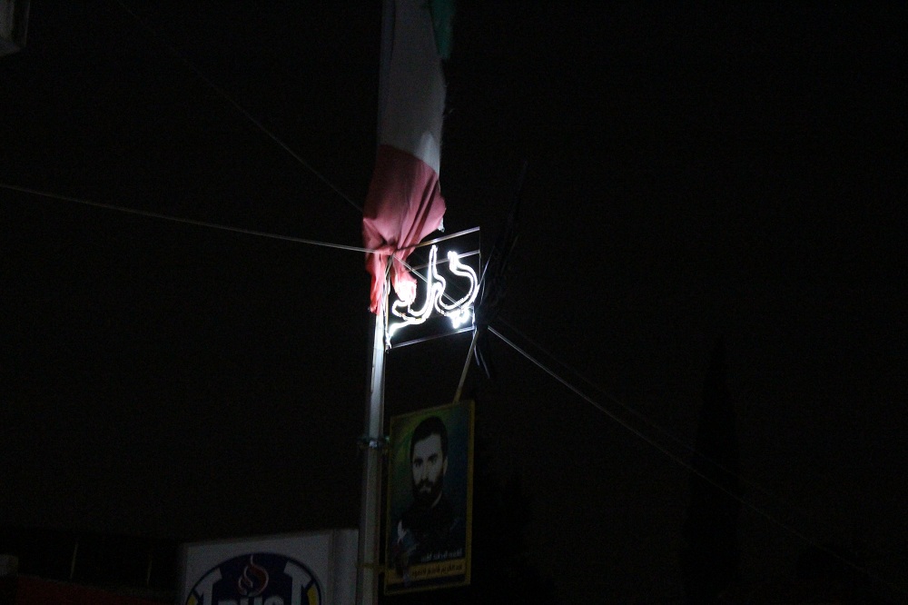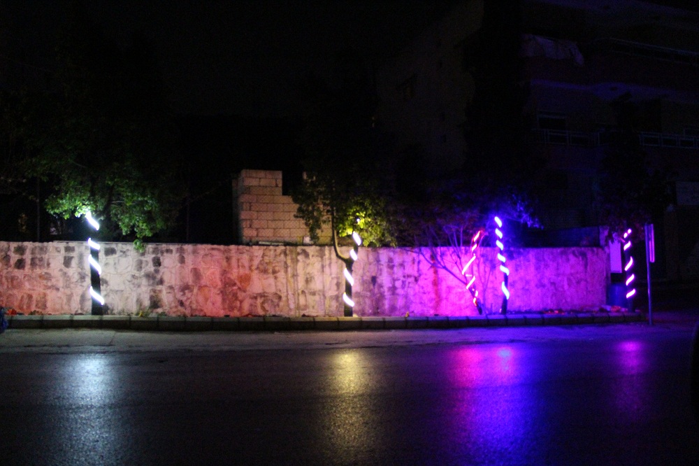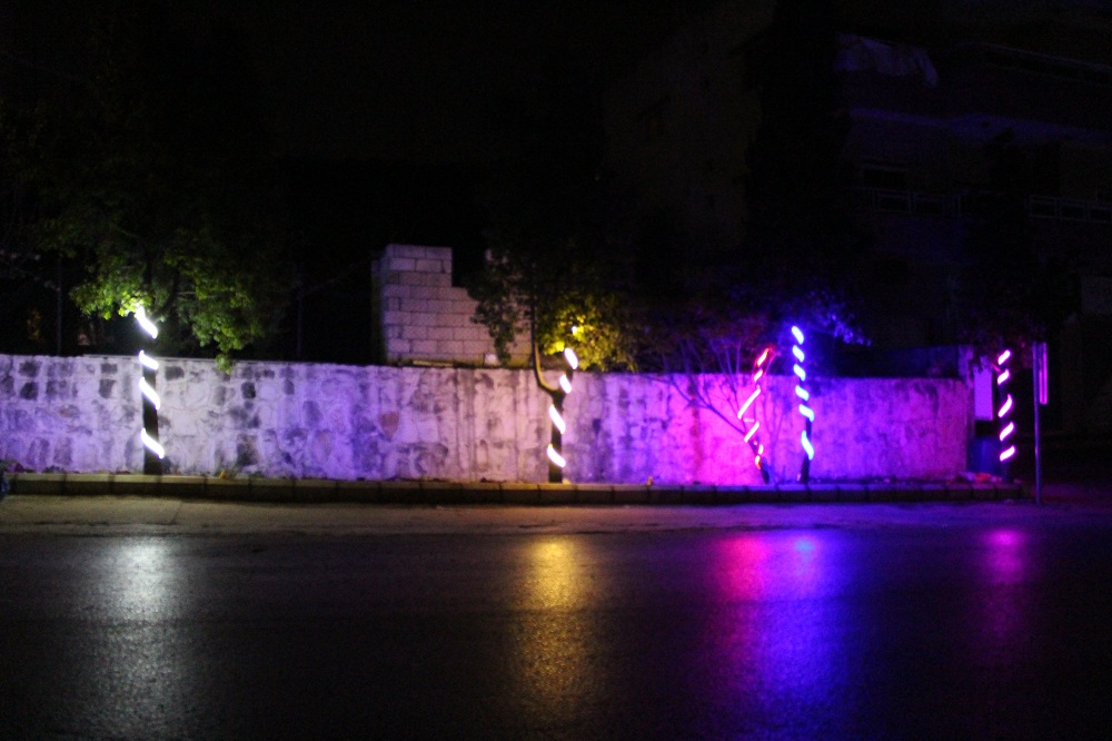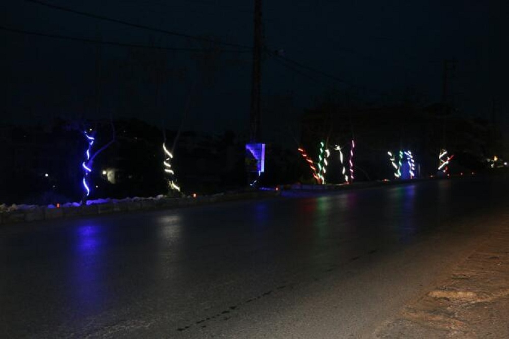 كما نفذت اعمال الانارة الملونة فتمت اضاءة كلمات " علي " على الاعمدة اضافة لانارة المدخل الرئيسي للبلدة
