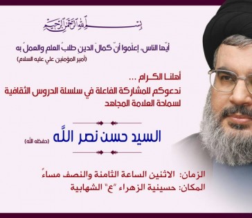 بسم الله الرحمن الرحيم بمناسبة مرور اربعين يوما على وفاة المرحومة الحاجة عليا مصطفى قانصو حرم المرحوم الحاج عبد النبي سلمان ندعوكم الى حضور مجلس عزاء حسيني عن روحها الطاهرة. الزمان : في تمام الساعة الرابعة والنصف من بعد ظهر غد اﻷحد الواقع فيه 14/5/2017 المكان : حسينية الزهراء(ع) / الدعوة عامة (للرجال_والنساء). ولكم الأجر والثواب .